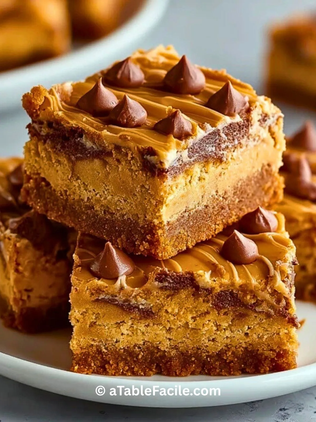 Barres ultra fondantes au Biscoff, sans cuisson, avec trois couches gourmandes : une base croustillante, une couche crémeuse à la pâte de Biscoff, et un nappage craquant au chocolat. Un délice rapide et sans stress !