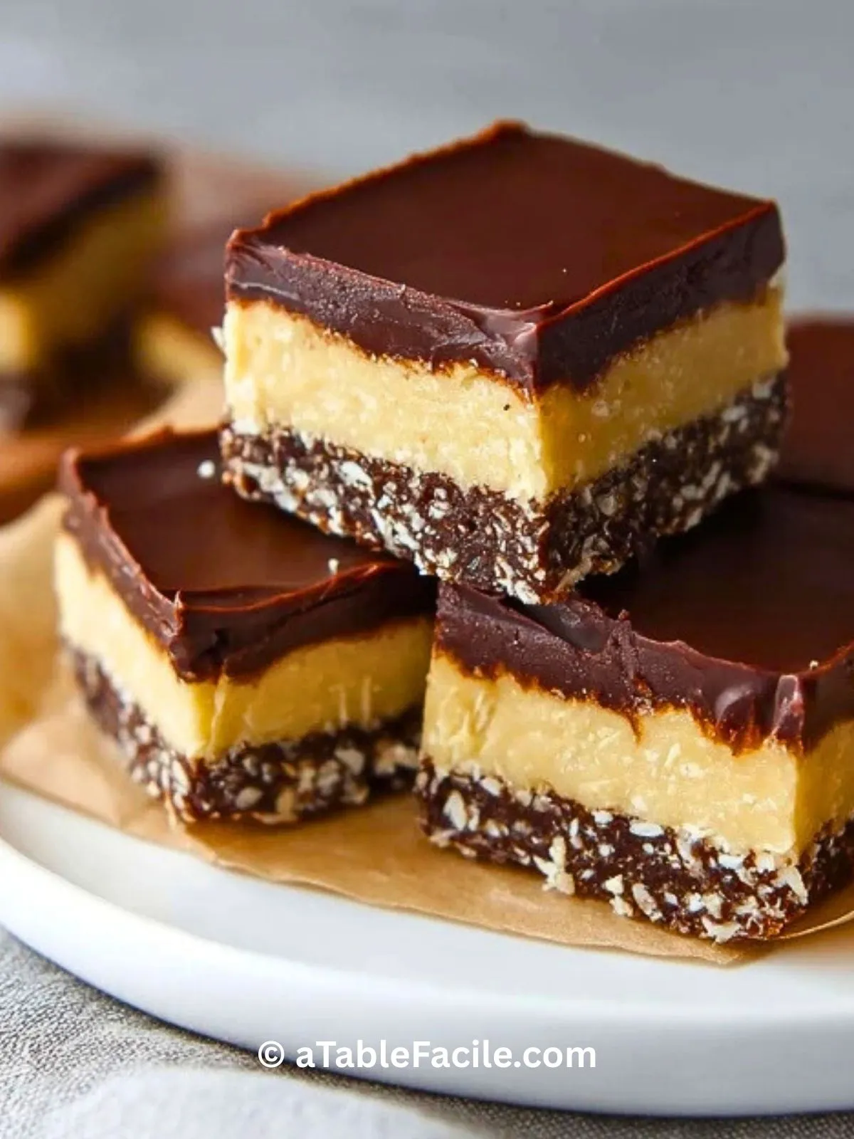 Keywords: barres nanaimo, dessert, facile, sans cuisson, chocolat, noix de coco