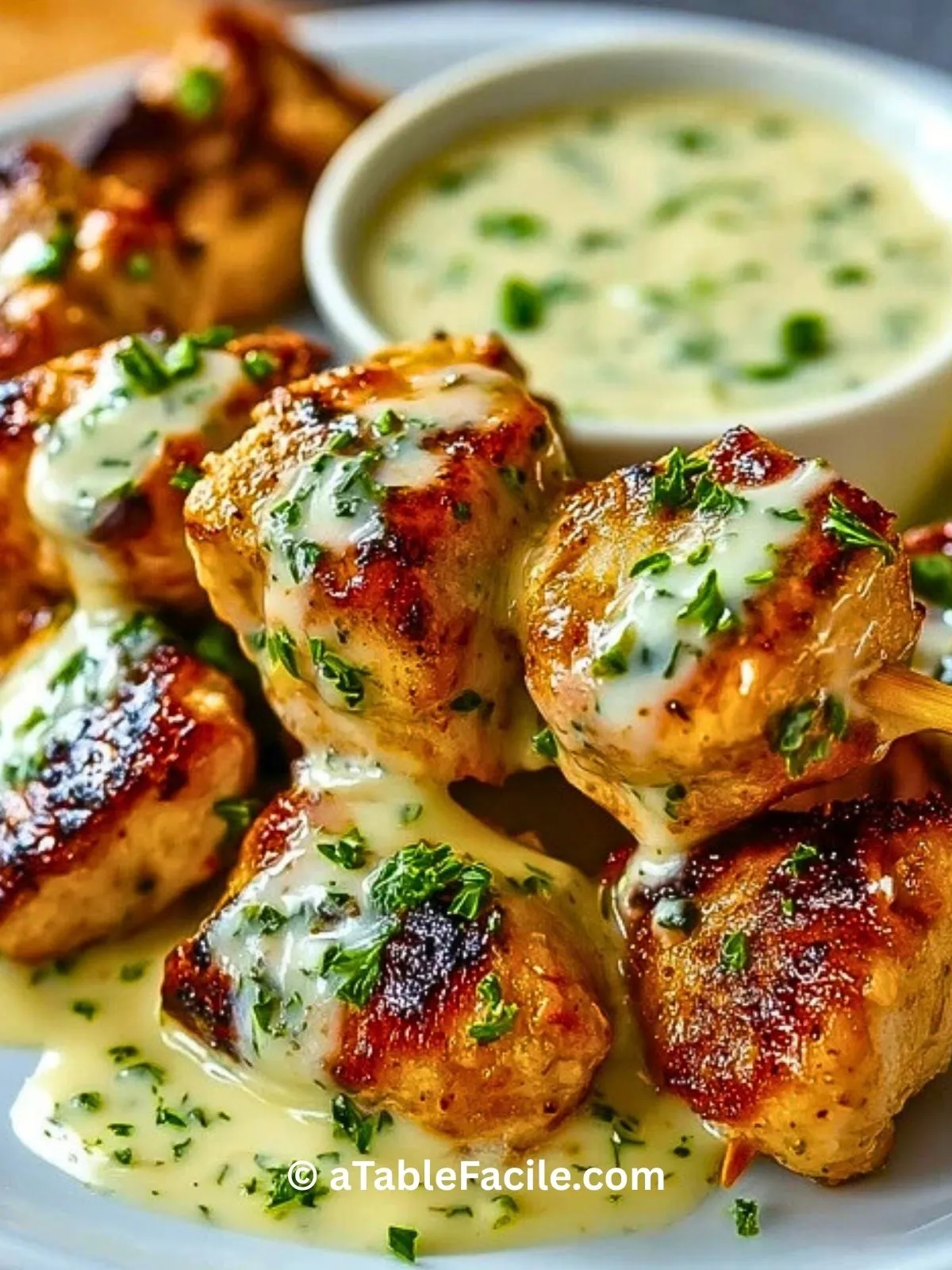 Bouchées De Poulet Grillé Avec Sauce Ail Crémeuse