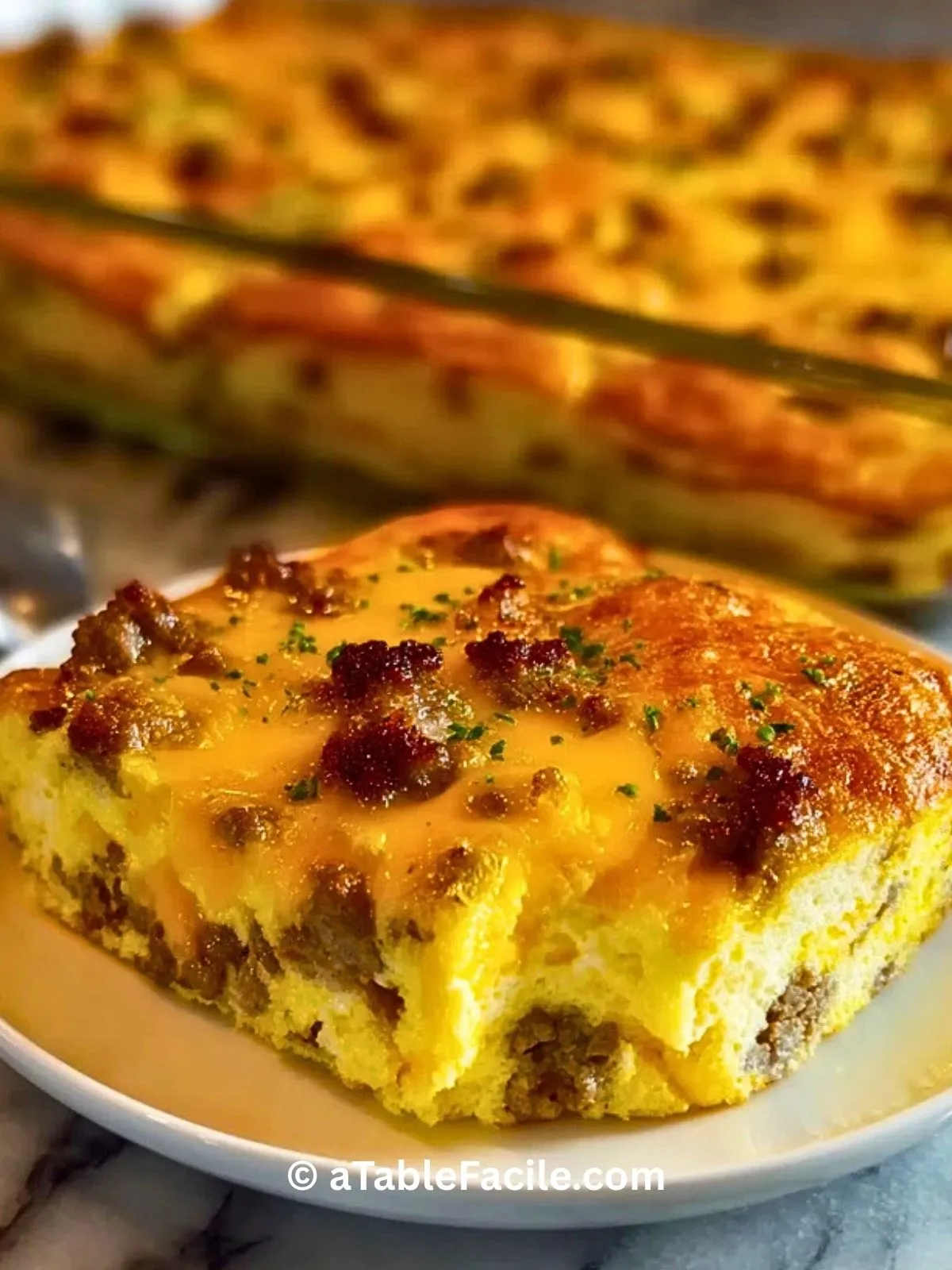Cette casserole moelleuse et ultra-gourmande, garnie de saucisses dorées, d’œufs et de fromage fondant, est le plat idéal pour régaler toute la famille au petit-déjeuner ou au brunch. Préparable la veille, elle est parfaite pour les matins festifs ou les grandes tablées du week-end.