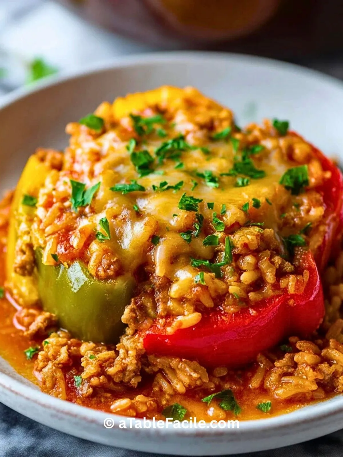 Keywords: poivrons farcis, casserole, rapide, gratin