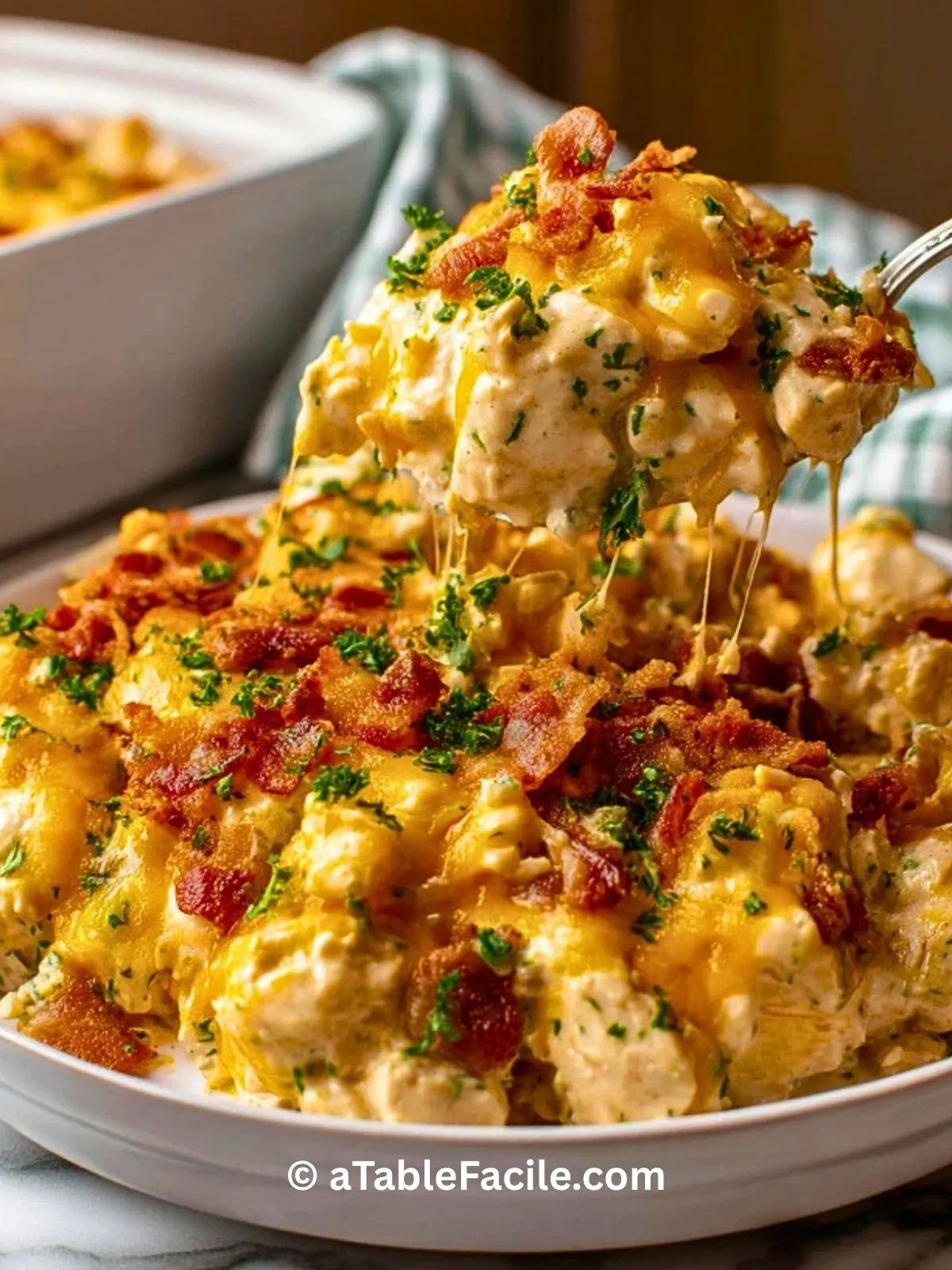 Une casserole de poulet crémeuse au bacon ultra fondante, parfaite pour un dîner réconfortant. Cette recette familiale, facile et savoureuse, combine tendreté du poulet, sauce onctueuse et bacon croustillant. Idéale pour un plat principal réconfortant.