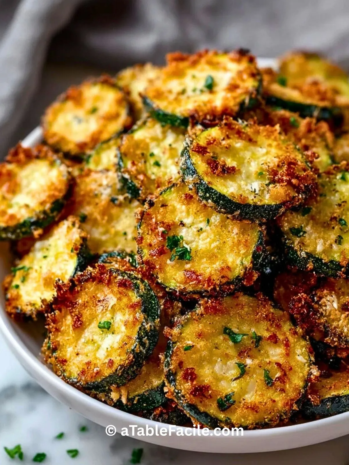 Des chips de courgette croustillantes au parmesan et à l’ail, cuites au four ou à l’air fryer, parfaites pour un apéritif léger et savoureux.