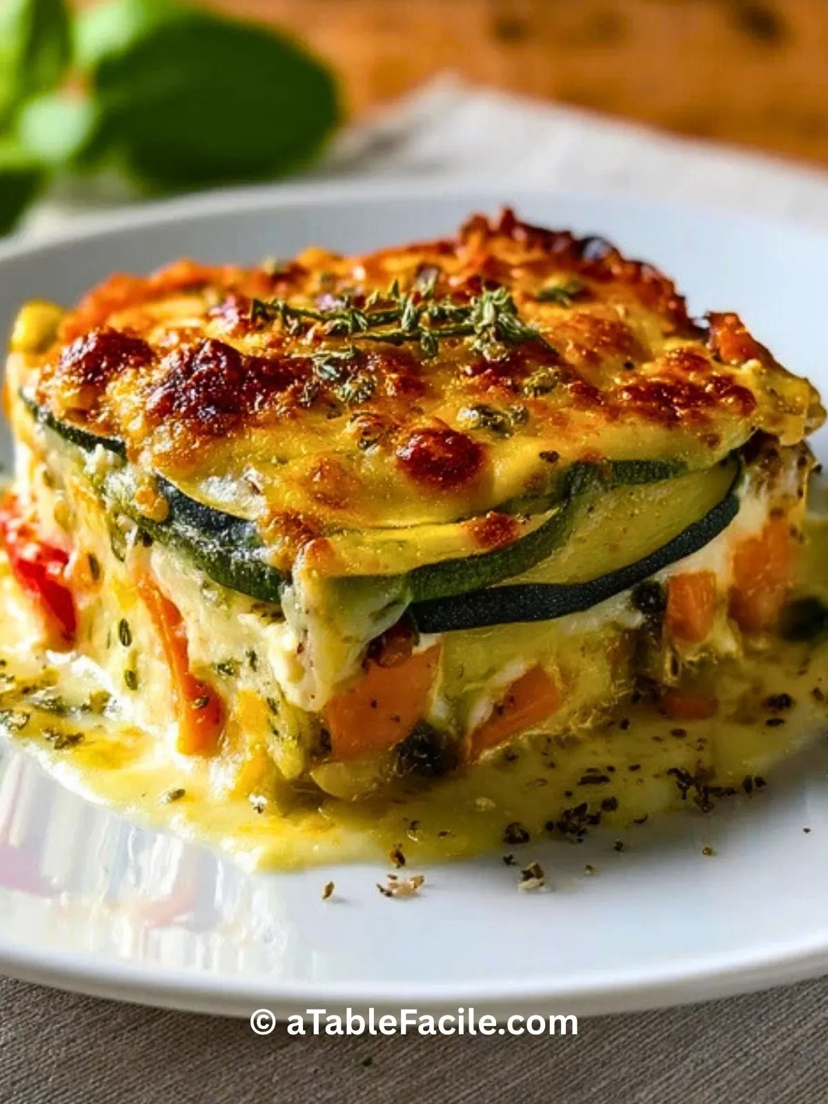 Ce plat a tout pour plaire : des couches de courgettes, de tomates, d’oignons, le tout lié par la douceur du fromage blanc et relevé par une touche de fromage gratiné. J’aime la façon dont les saveurs se mélangent pendant la cuisson et comment chaque bouchée reste moelleuse et savoureuse. Une vraie invitation à la gourmandise !