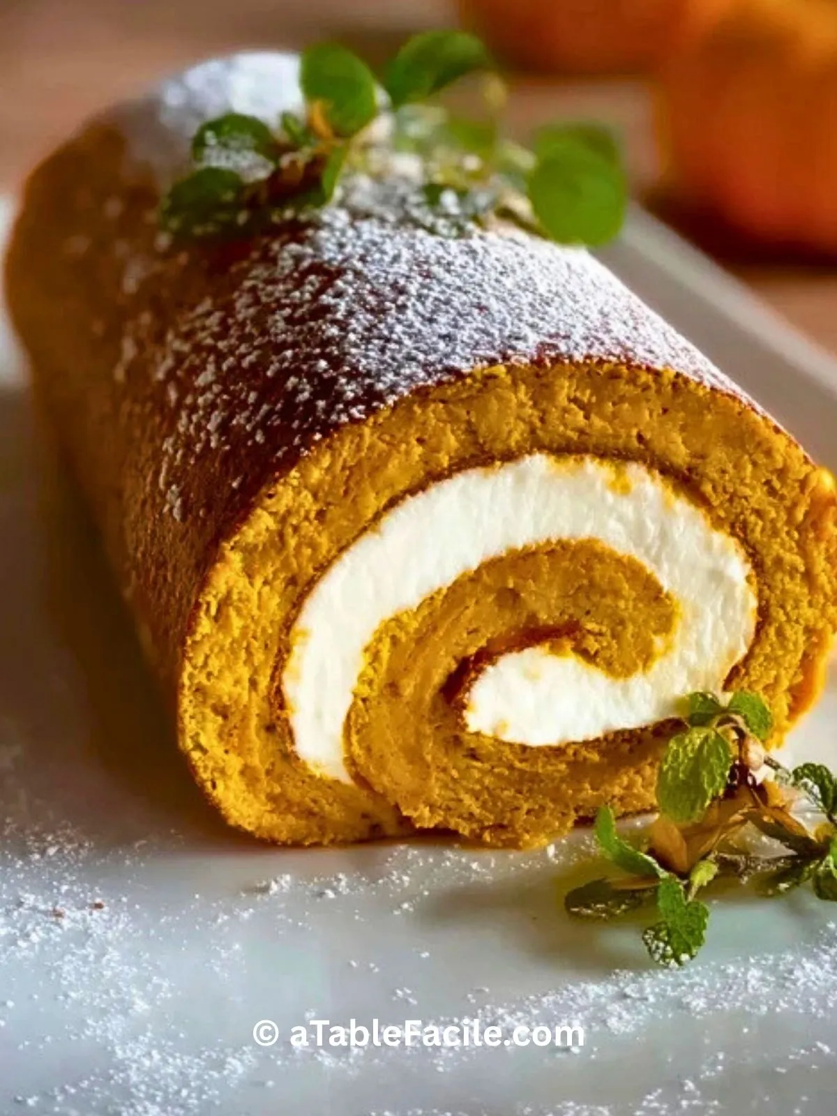 Keywords: roulé à la citrouille, dessert automne, génoise, recette facile, épices